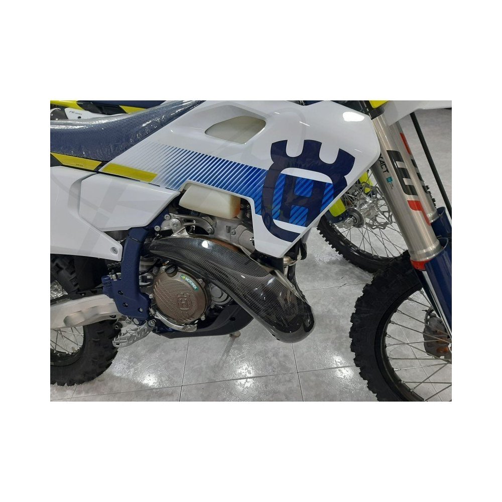 Matériau : La protection de pot d'échappement est fabriquée en fibre de carbone, un matériau composite léger, rigide et résistant. La fibre de carbone est utilisée pour sa combinaison de légèreté et de robustesse. Elle est utilisée pour sa durabilité et sa capacité à résister à la chaleur générée par le pot d'échappement Poids : 580 g - Matière : Carbone Support : collier inox (évite la corrosion) Design Élégant : Les protections de pot d'échappement en fibre de carbone sont conçues pour s'adapter esthétiquement à la moto. Elles ont un aspect sportif et moderne. Installation : Les protections de pot d'échappement en fibre de carbone sont faciles à installer. Elles sont fixées à l'aide de colliers de serrage. La protection n’est pas en contact direct avec votre pot d’échappement Protection thermique : En plus de protéger contre les éraflures et les impacts, ces protections offrent une certaine isolation thermique pour éviter que la chaleur du pot d'échappement ne soit trop ressentie par le pilote ou les pièces avoisinantes. Protéger l'échappement de votre moto est essentiel pour assurer sa durabilité et son bon fonctionnement, surtout dans des conditions tout-terrain exigeantes.