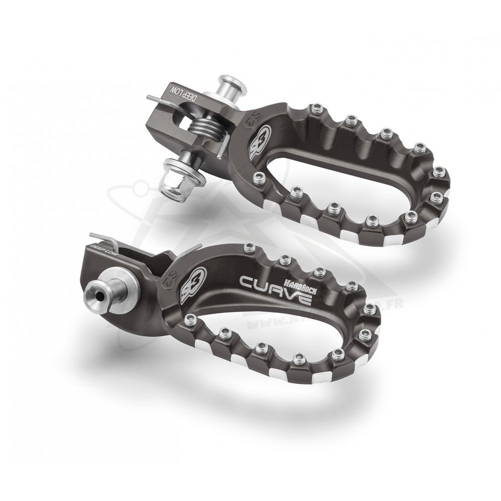 Reposes-pieds ESK-990 en aluminium 7075 Ergal conçus pour offrir plus d’adhérence, de stabilité et de durabilité. Disponibles en deux positions (High ou Low), ils disposent d’une surface élargie pour un meilleur contrôle de la moto. Leur conception ouverte évacue facilement la boue et garantit des performances constantes. Installation rapide avec ressorts, axes inox réglables, écrous et rondelles aluminium inclus.
