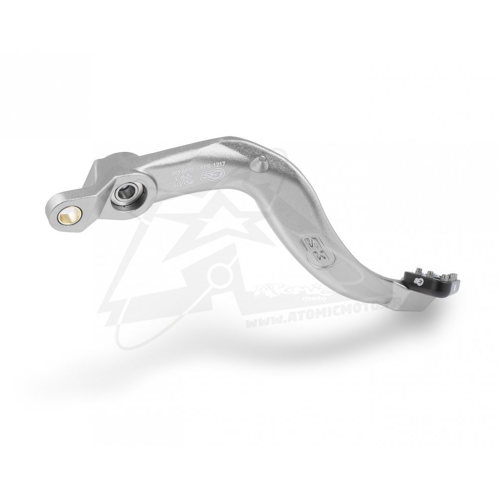 La pédale de frein arrière S3 est conçue pour les pilotes exigeants recherchant une pièce à la fois robuste, légère et performante. Grâce à sa fabrication en aluminium forgé, elle offre une résistance exceptionnelle aux chocs et aux contraintes rencontrées en enduro et en tout-terrain. Sa conception hyper renforcée garantit une grande durabilité tout en conservant un poids réduit. L’usinage précis et la finition haut de gamme assurent un montage facile et un ajustement parfait sur la moto. La pédale bénéficie d’une anodisation de qualité accompagnée d’un logo S3 gravé au laser, apportant un look Factory Series particulièrement soigné. Pour un pilotage plus précis, la pédale est équipée du système Grip-Stick S3, qui améliore l’adhérence du pied et permet un contrôle optimal du frein arrière, même dans les conditions les plus exigeantes. Caractéristiques : Construction hyper renforcée pour une résistance maximale Fabrication en aluminium forgé Poids réduit pour de meilleures performances Montage facile Finition anodisée haute qualité Logo S3 gravé au laser Excellente adhérence grâce au système Grip-Stick S3 Look Factory Series