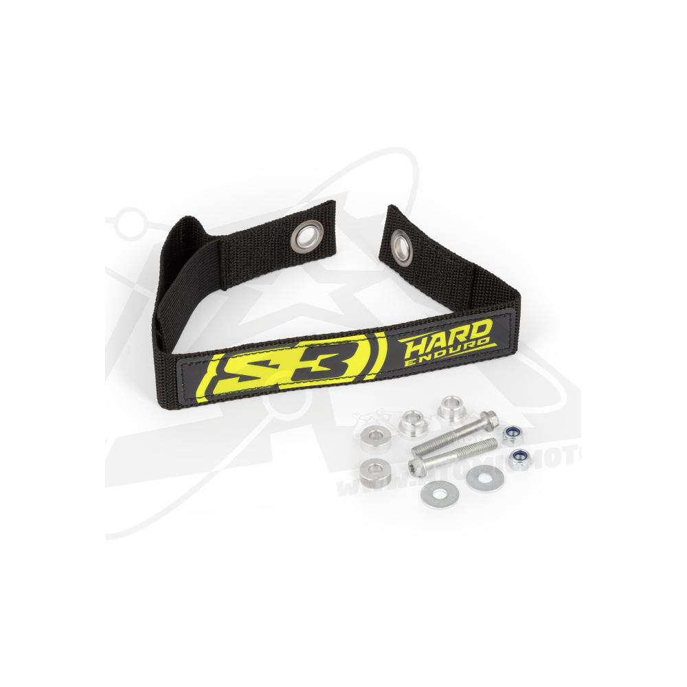 La sangle de garde-boue arrière S3 est spécialement conçue pour les pilotes d’enduro et de hard enduro qui doivent faire face à des passages techniques ou à des situations extrêmes sur le terrain. Dans les zones compliquées, comme les montées abruptes, les franchissements ou les terrains boueux, cette sangle permet de tirer l’arrière de la moto plus facilement et en toute sécurité. Elle devient rapidement un accessoire indispensable pour sortir la moto d’un passage difficile ou recevoir l’aide d’un autre pilote. Conçue pour résister aux contraintes du tout-terrain, la sangle S3 offre une excellente solidité, une grande durabilité et un montage simple. Elle se fixe directement sur le garde-boue arrière et est livrée avec les vis et accessoires nécessaires pour une installation rapide. Disponible en deux longueurs, elle s’adapte à différents montages et configurations de motos. Avec sa conception robuste, sa qualité premium et son design orienté hard enduro, elle constitue un équipement essentiel pour les sorties engagées et les compétitions. Caractéristiques : Sangle de traction arrière pour enduro et hard enduro Permet de tirer ou déplacer l’arrière de la moto facilement Idéale pour les zones techniques et passages difficiles Montage simple et rapide Visserie et accessoires inclus Qualité premium et conception robuste Design spécifique Hard Enduro Modèles disponibles Modèle arrière – DEC-653-x : 435 mm de centre à centre Vis et accessoires de montage inclus